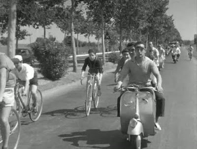 scooters Vespa que l’on voit traverser l’écran.